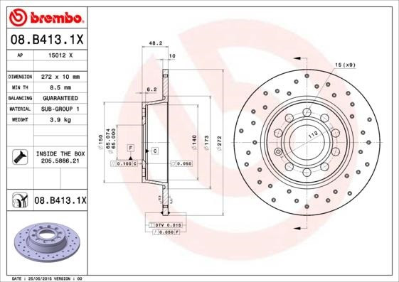 - Brembo Xtra vrtané kotouče zadní nápravy 272x10mm Škoda Octavia RS Golf GTI