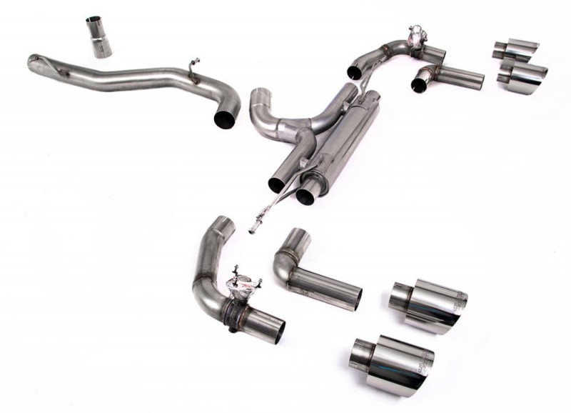 Catback výfuk 80mm VW Golf R Mk8 2.0 TSI OPF/GPF Milltek Sport - Hlasitější / leštěné kulaté koncovky