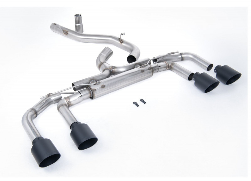 - Catback výfuk bez klapek 80mm VW Golf R Mk8 2.0 TSI OPF/GPF Milltek Sport - Hlasitější / černé kulaté koncovky