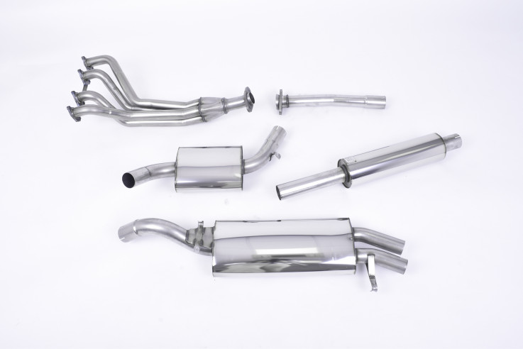 Kompletní výfuk vyroben z kvalitní nerezové oceli, obsahuje laděné výfukové svody, dále pokračuje středovými tlumiči s vedením kolem zadní nápravy a sportovním zadní tlumič výfuku s autentickými koncovkami výfuku Díky zvětšenému průměru vedení již od hlavy válců má tento výfuk největší vliv na výkon vozu. Výfuk je až o 35% lehčí než originální, vyrobený z těžké oceli. Zlepšuje a zvýrazňuje zvuk motoru.
