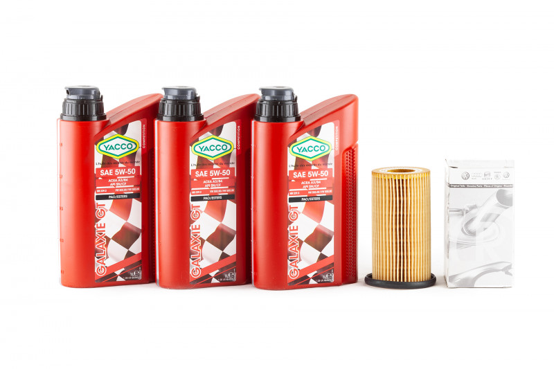 Základní servisní set pro motor 2,0 TFSI EA113 Olej Yacco Galaxie GT 5w50 VW 502 00 a Originální olejový filtr