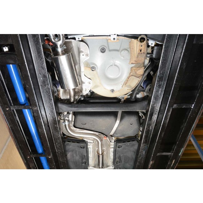 Catback výfuk Cobra Sport vyrobený z nerezové oceli T304. Celý výfuk je tvořen ohýbaným vedením o průměru 76,2 mm s průchozím absorpčním tlumičem. Díky zlepšení proudění spalin a eliminaci zpětných tlaků dokáží výfuky Cobra Sport zprostředkovat jak maximální výkon, tak hlavně i pěkný jadrný zvuk.
