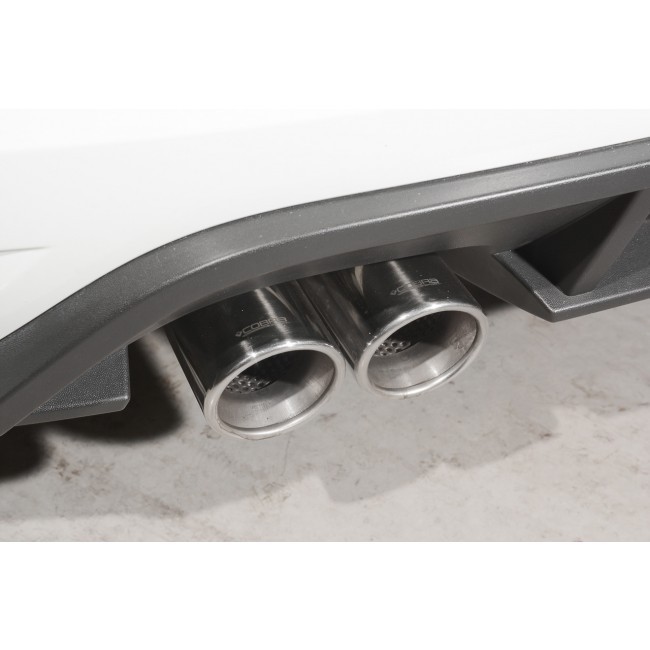 Catback výfuk Cobra Sport vyrobený z nerezové oceli T304. Celý výfuk je tvořen ohýbaným vedením o průměru 76,2 mm s průchozím absorpčním tlumičem. Díky zlepšení proudění spalin a eliminaci zpětných tlaků dokáží výfuky Cobra Sport zprostředkovat jak maximální výkon, tak hlavně i pěkný jadrný zvuk.
