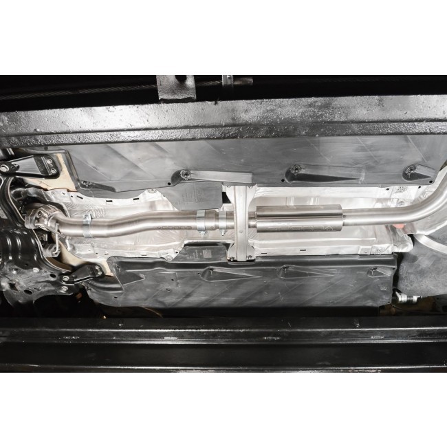 Turboback výfuk Cobra Sport vyrobený z nerezové oceli T304. Celý výfuk je tvořen ohýbaným vedením o průměru 76,2 mm s průchozím absorpčním tlumičem. Díky zlepšení proudění spalin a eliminaci zpětných tlaků dokáží výfuky Cobra Sport zprostředkovat jak maximální výkon, tak hlavně i pěkný jadrný zvuk.
