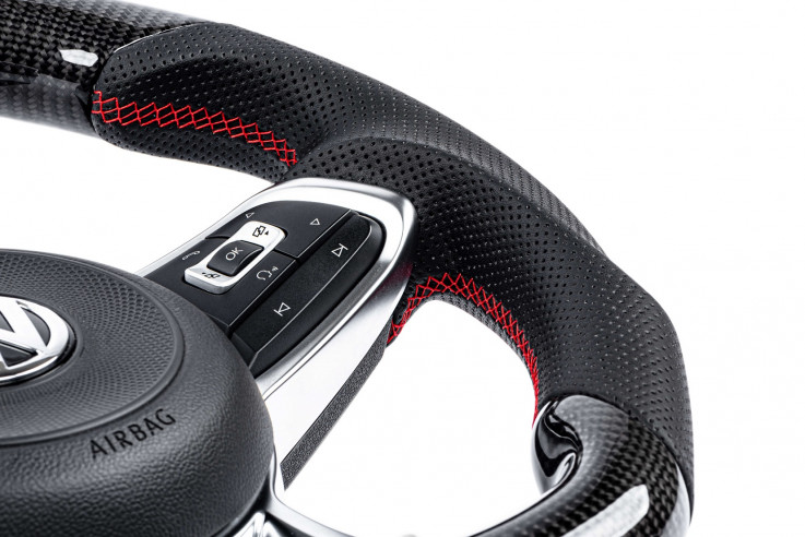 - APR Karbonový volant s perforovanou kůží prošitý Červenou nití pro DSG VW Golf 7R T-Roc Arteon Polo Up GTI