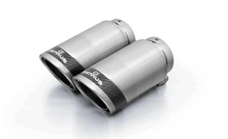 Součástí produktu je nerezová sada 2 nastavitelných koncovek Ø 84 mm Carbon Race, zkosená, karbonový pásek.