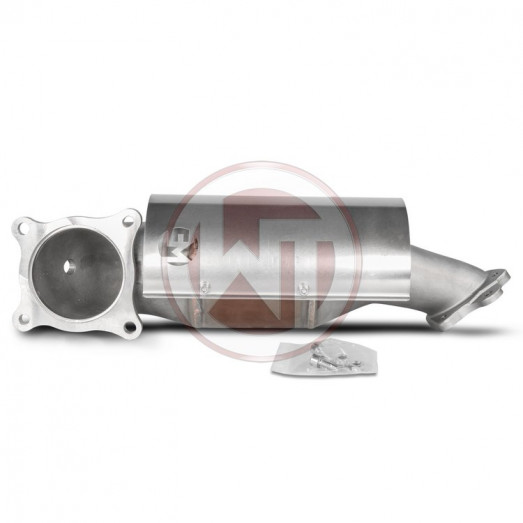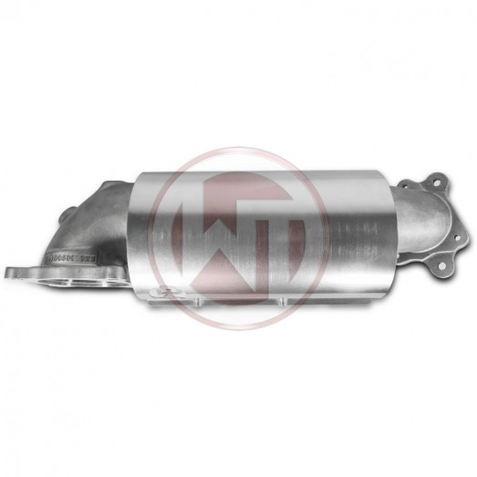 Celonerezový 1. díl výfuku o průměru 76mm se závodním 200 komorovým katalyzátorem. Wagner Tuning kompletně přepracoval, tento pro výkon nejdůležitější díl tak, aby padnul kus za kus (bolt on) za seriový díl a napojil se bez problémů na zbytek výfuku. Díky využití CAD designu u návrhu a kvalitní T304 nerezové oceli při výrobě si můžete být jisti jak kvalitou a zpracováním, tak přírustkem výkonu na který byl kladen velký důraz.