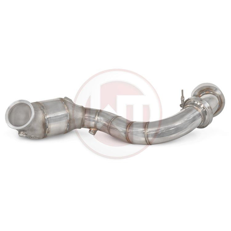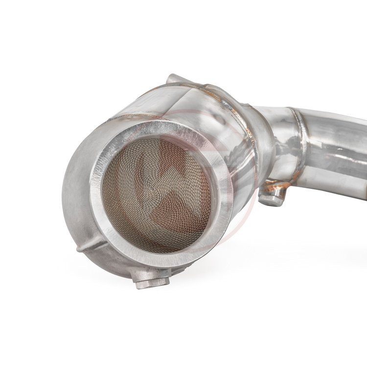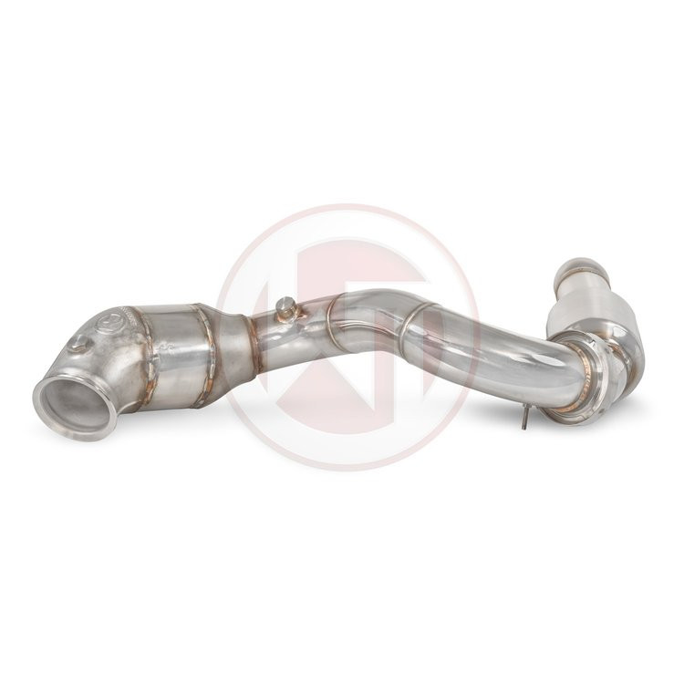 Celonerezový 1. díl výfuku o průměru 76mm se závodním 300 komorovým katalyzátorem. Wagner Tuning kompletně přepracoval, tento pro výkon nejdůležitější díl tak, aby padnul kus za kus (bolt on) za seriový díl a napojil se bez problémů na zbytek výfuku. Díky využití CAD designu u návrhu a kvalitní T304 nerezové oceli při výrobě si můžete být jisti jak kvalitou a zpracováním, tak přírustkem výkonu na který byl kladen velký důraz.
