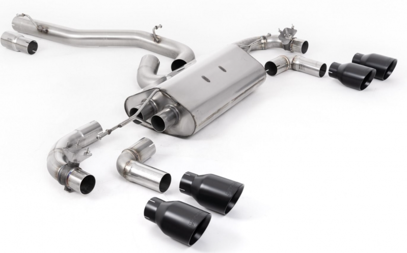 - 80mm valved catback VW Golf 7.5 R 2.0 TSI (facelift 2017->) Milltek Sport - Louder / Cerakote Black round tips