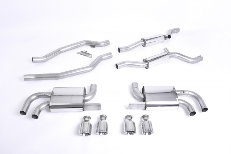 Vyroben z kvalitní nerezové oceli. Napojuje se za sériové katalyzátory. Obsahuje středový díl bez rezonátorů (hlasitější) nebo s rezonátory (tišší), vedení kolem zadní nápravy a tlumiče výfuku se zakončením do sériových, nebo Milltek Sport leštěných koncovek výfuku o průměru 100 mm. Díky zvětšenému průměru vedení a zlepšení průtoku spalin skrz vedení, zlepšuje jak výkon, tak hlavně i zvukový projev. Výfuk je až o 35% lehčí než originální, vyrobený z těžké oceli. Největší nárust výkonu a úbytek hmotnosti lze čekat ve spojení s úpravou řídící jednotky od APR.