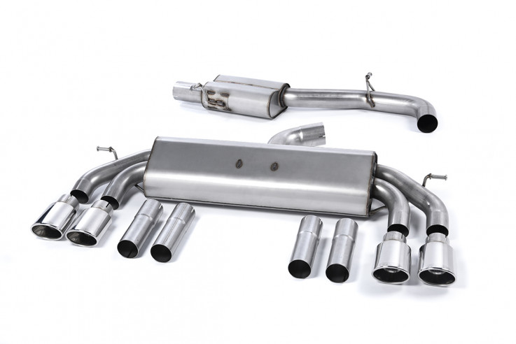 Milltek Sport nabízí několik variant catback výfuků pro Audi S3 8V quattro Sedan / Cabrio 2.0 TFSI. Základní rozdělení je podle počtu tlumičů, kde verze bez rezonátoru nemá středový tlumič, který je nahrazen trubkou. Tato verze je nejhlasitější, což nemusí každému vyhovovat.