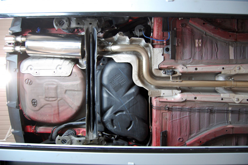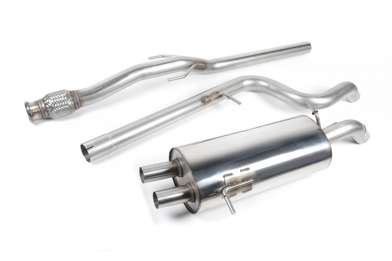 Vyroben z kvalitní nerezové oceli. Obsahuje středový díl bez rezonátoru (hlasitější) nebo s rezonátorem (tišší), vedení kolem zadní nápravy a tlumič výfuku za zadní nápravou. Zakončuje ho několik variant koncovek výfuku. Díky zvětšenému průměru vedení a zlepšení průtoku spalin skrz vedení, zlepšuje jak výkon, tak hlavně i zvukový projev. Výfuk je až o 35% lehčí než originální, vyrobený z těžké oceli. Největší nárust výkonu a úbytek hmotnosti lze čekat ve spojení s prvním dílem výfuku Milltek Sport.