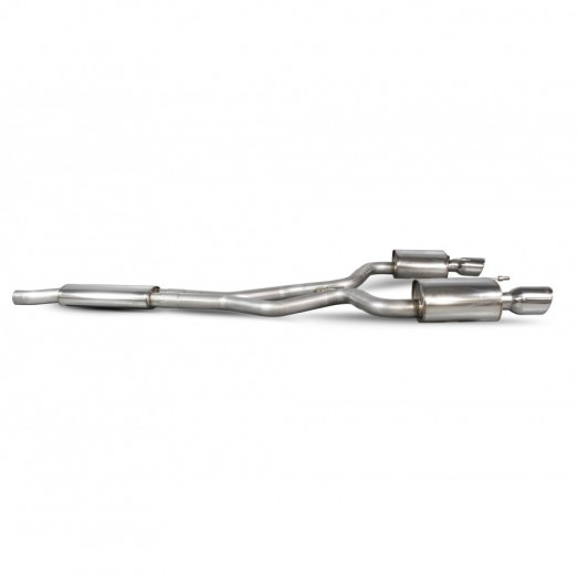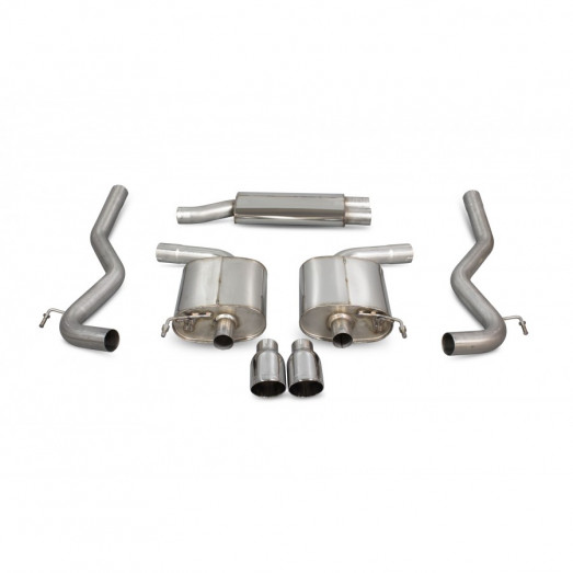 Catback výfuk Scorpion Exhaust vyrobený z nerezové oceli T304. Celý výfuk je tvořen ohýbaným vedením o průměru 70mm s průchozím absorbčním tlumičem / tlumiči (podle verze). Díky zlepšení proudění spalin a eliminaci zpětných tlaků dokáží výfuky Scorpion sprostředkovat jak maximální výkon, tak hlavně i pěkný jadrný zvuk.