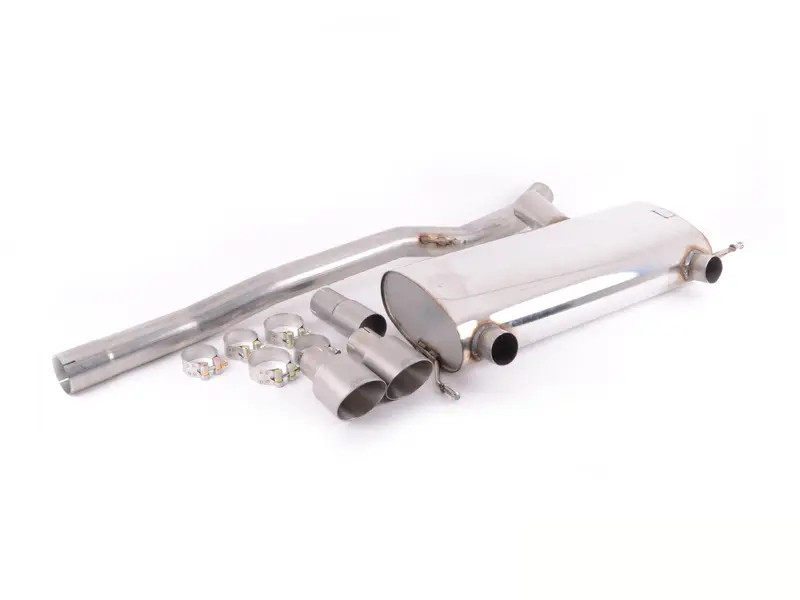Vyroben z kvalitní nerezové oceli. Zvětšený průměr potrubí na 76,20mm. Obsahuje podle verze díl s rezonátorem (tišší) nebo bez rezonátoru (hlasitější verze), vedení kolem zadní nápravy s tlumičem výfuku za zadní nápravou. Zakončuje ho dvojitá koncovka výfuku Díky zvětšenému průměru vedení přispívá k lepšímu proudění výfukových plynů, což má pozitivní vliv na výkon hlavně u upravených aut. Výfuk je až o 35% lehčí než originální, vyrobený z těžké oceli. Zlepšuje a zvýrazňuje zvuk motoru. Největší nárust výkonu a úbytek hmotnosti lze čekat ve spojení s prvním dílem výfuku Milltek Sportu a úpravou řídící jednotky od APR.