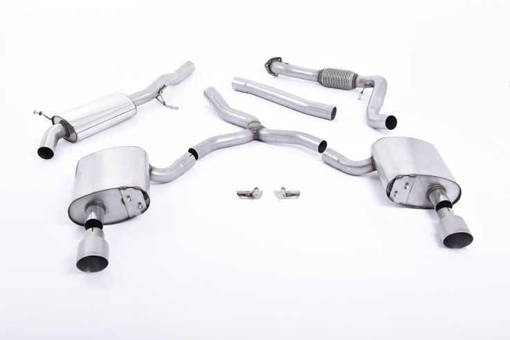 Milltek Sport nabízí několik variant catback výfuků pro AUDI A4 (B9) Quattro 2.0 TFSI. Základní rozdělení je podle počtu tlumičů, kde verze bez rezonátoru nemá středový tlumič, který je nahrazen trubkou. Tato verze je nejhlasitější, což nemusí každému vyhovovat.