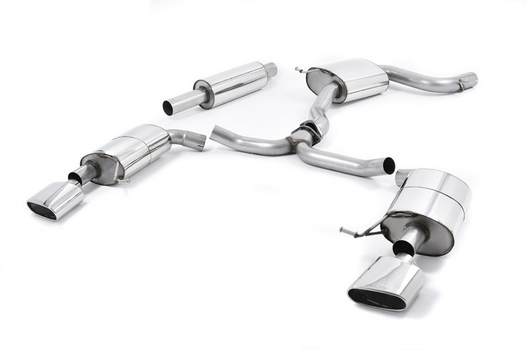 Vyroben z kvalitní nerezové oceli. Obsahuje díl bez rezonátoru (nejhlasitější verze), nebo variantu s rezonátorem (tišší varianta), vedení kolem zadní nápravy s tlumiči výfuku za zadní nápravou a zakončuje ho několik variant koncovek výfuku. Díky zvětšenému průměru vedení přispívá k lepšímu proudění výfukových plynů, což má pozitivní vliv na výkon hlavně u upravených aut. Výfuk je až o 35% lehčí než originální, vyrobený z těžké oceli. Zlepšuje a zvýrazňuje zvuk motoru, ovšem bez nežádoucího dunění. Největší nárust výkonu a úbytek hmotnosti lze čekat ve spojení s prvním dílem výfuku Milltek Sport a úpravou řídící jednotky od APR.