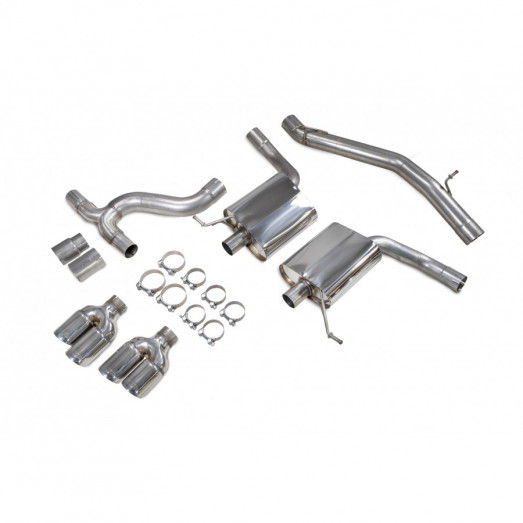 GPF-back Scorpion Exhaust made of T304 stainless steel. The entire exhaust is made up of 80mm diameter pipework. By improving exhaust flow and eliminating back pressure, Scorpion Exhausts can deliver both maximum power and, more importantly, a nice sound.