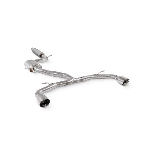 Catback Scorpion Exhaust made of T304 stainless steel. The entire exhaust is made up of 76mm diameter pipework. By improving exhaust flow and eliminating back pressure, Scorpion Exhausts can deliver both maximum power and, more importantly, a nice sound.