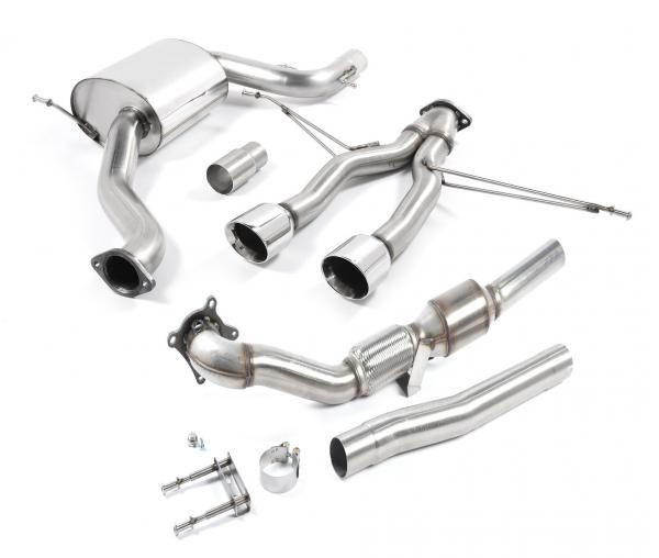 Kvalitní celonerezový turboback výfuk o průměru 76,20mm od firmy Milltek Sport. Jak již název napovídá, napojuje se již na turbodmychadlo a obsahuje díl s HJS sportovním katalyzátorem nebo 1.díl výfuku katalyzátoru, středový díl s rezonátorem, vedení kolem zadní nápravy a zakončují ho dvě kulaté koncovky. Díky svému nízkotlakému designu lze očekávat nárůst výkonu a točivého momentu v celém spektru otáček, zlepšení zvukové kulisy bez nežádoucího dunění a mírné snížení hmotnosti oproti seriovému výfuku. Největší nárust výkonu lze čekat ve spojení s úpravou řídící jednotky od APR.