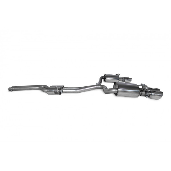 Rear section Scorpion Exhaust made of T304 stainless steel. The entire exhaust is made up of 63,5mm diameter pipework. By improving exhaust flow and eliminating back pressure, Scorpion Exhausts can deliver both maximum power and, more importantly, a nice sound.