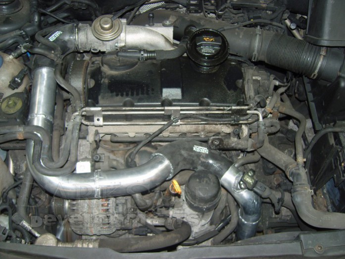 Kompletní robustní vedení k intercooleru pro 1,9TDI PD ARL 110kW s kitem pro odstranění EGR a ASV s možností dosazení většího celohliníkového intercooleru z S3 (+9496kč nutno dokoupit zvlášť).