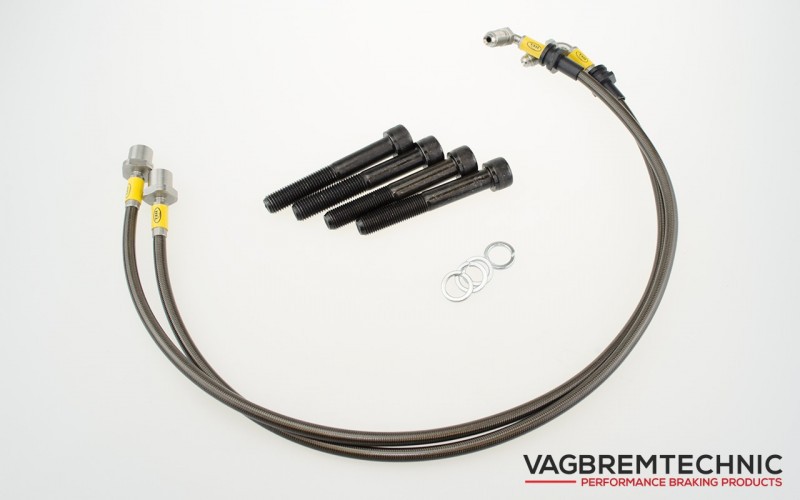 Držáky třmenu jsou vyrobené z lehkého hliníku, které jsou vyztužené železnými vložkami pro maximální pevnost. Jsou povrchově upravené anodisováním do černé barvy. Dodávané pancéřované hadice jsou vyráběné na zakázku přímo pro tento kit od HEL Performance a obsahují nerezové fitinky a hadice jsou provedené v karbonové černé podobě. Montážní kit obsahuje pevnostní M12 šrouby a kvalitní pérové podložky.